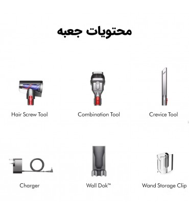 جارو شارژی دایسون مدل Dyson V15 Detect همراه با مجموعهای از لوازم جانبی کاربردی عرضه میشود که شامل موارد زیر است: